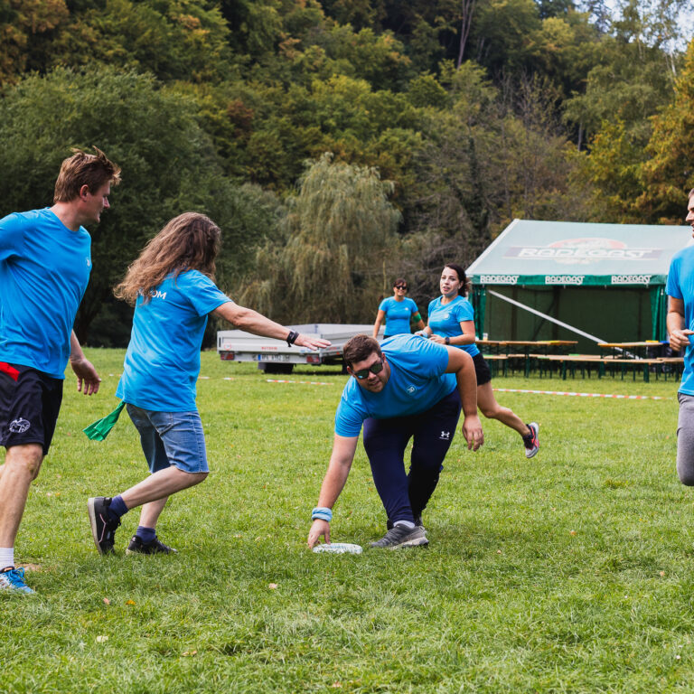 Pro fyzicky zdatné zaměstnance byl určen program v areálu. Během odpoledne si vyzkoušeli hry jako „hořící míč“ (velmi zjednodušená verze baseballu), „Ringo“ (přehazovaná na volejbalovém hřišti se dvěma kroužky), „Kubb“ (hra se dřevěnými hranoly) a zjednodušené Frisbee. Nejen, že bylo potřeba mít dobrou fyzičku, ale také být týmovým hráčem.