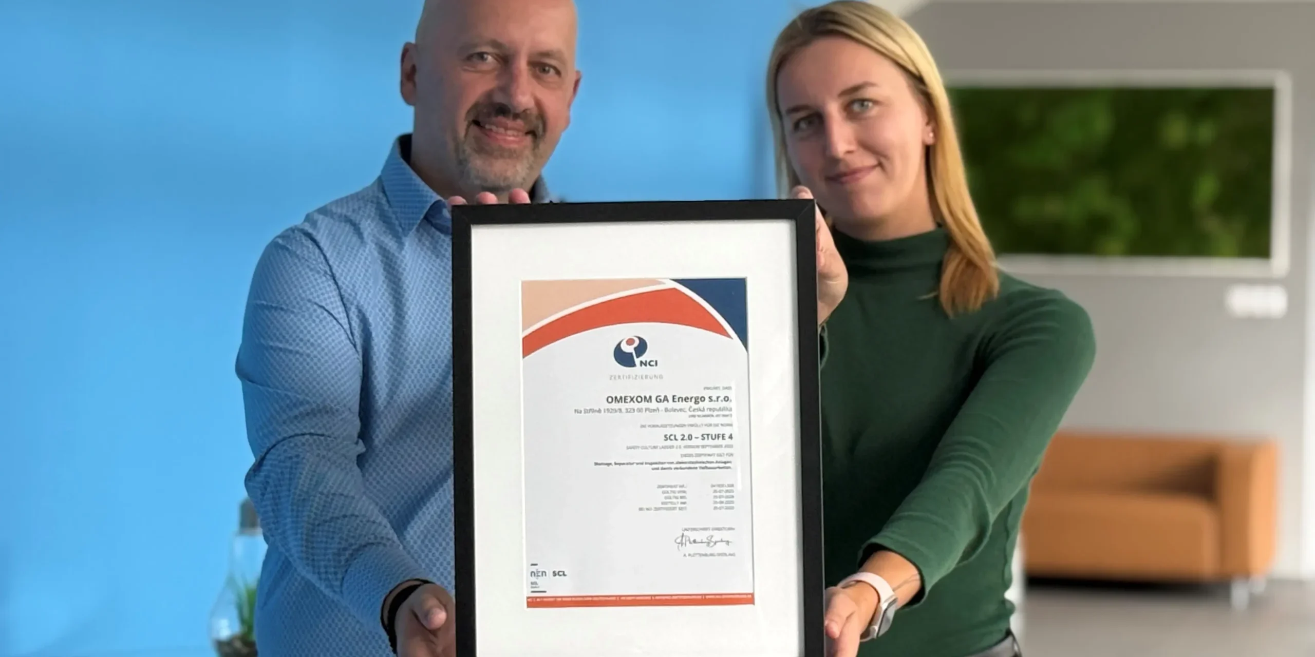 Společnost Omexom GA Energo dosáhla mimořádného úspěchu – jako jediná firma v České republice získala prestižní certifikát Safety Culture Ladder (SCL) 4. stupně. Certifikaci udělila renomovaná nizozemská společnost NCI, která patří mezi přední evropské autority v oblasti bezpečnosti práce. Tento krok potvrzuje, že Omexom GA Energo patří mezi špičku nejen v tuzemsku, ale i v rámci celé Evropy.